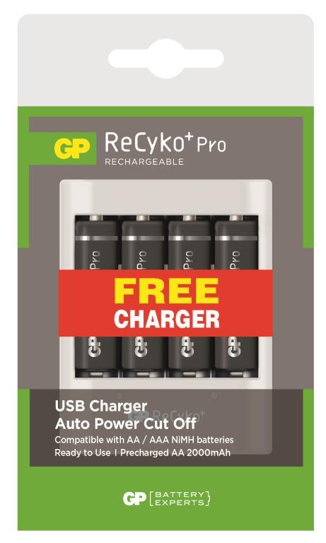 GP Recyko 1.2V 2000mAh NiMH AA Battery x 4 - Including 1 USB Charger