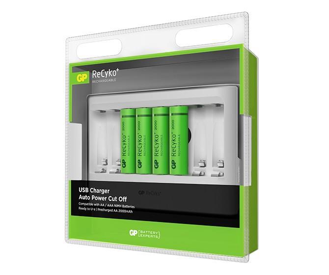 GP Recyko 8 bay USB Charger - Including 4 X NiMH AA Batteries